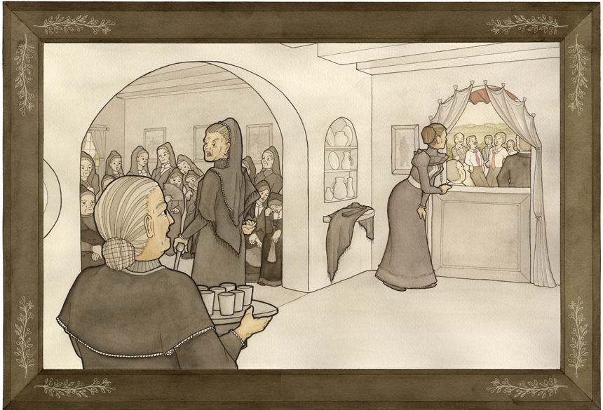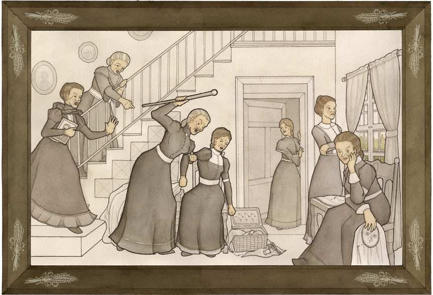 A series of illustrations for an illuminated version of “The House of Bernarda Alba,” a play written by Federico Garcia Lorca.